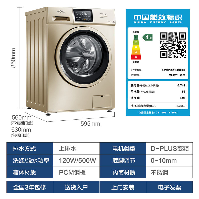 Midea/美的 MD80VN13DG5 8KG Стиральная машина для инверторной машины Полностью автоматическая домашняя стиральная и сушильная машина