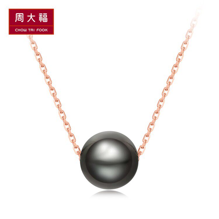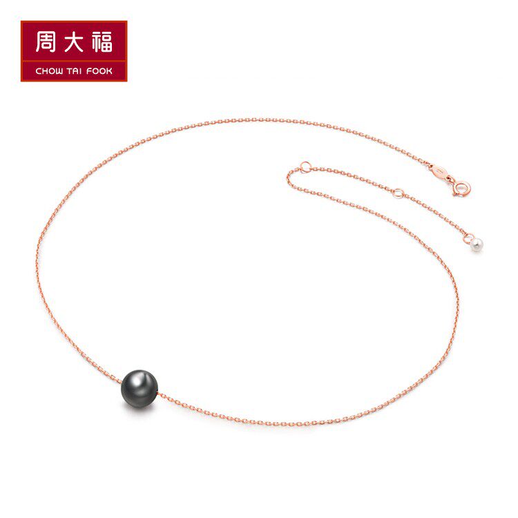 周大福 Ожерелье из жемчуга, цепочка, подвеска, золото 750 пробы