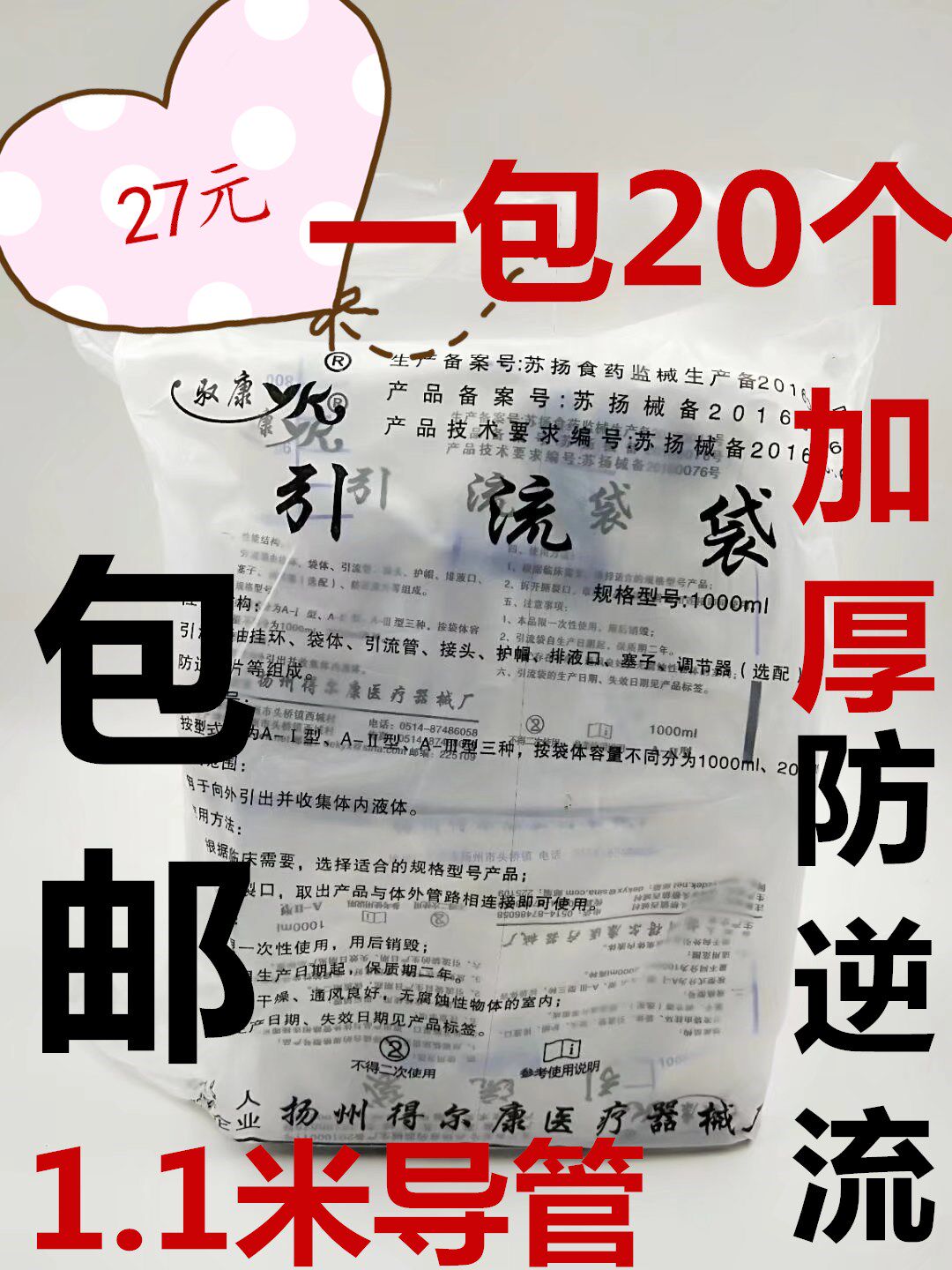 Длинный туалетный мешок, 1000 мл, увеличенная толщина, 1.1м