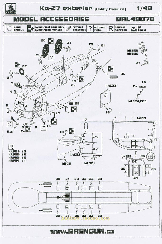 BRL-48078 Карта 27/KA-27 Вертолет 1/48 Модель сборки Внешние детали (Hobbyb)