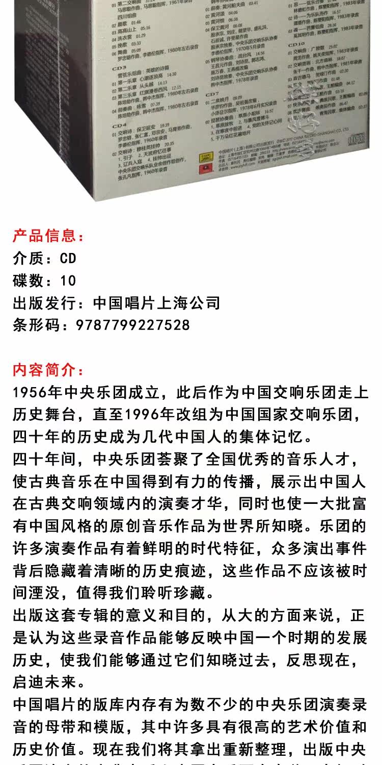 Подлинная китайская музыкальная симфония CD Central Orchestra Central Orchestra 40 -летняя коллекция звукозаписи Classic Works 10CD диск