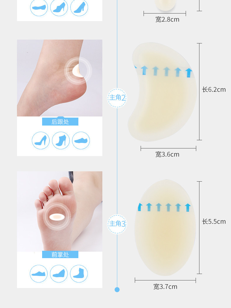 Гель, клей, износостойкие напяточники, туфли на высоком каблуке, полустельки, 4 штук, впитывает пот и запах