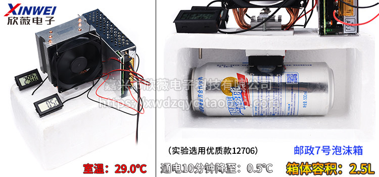 5.[冷端风扇不要开][,这样空气流动大,冷端温度肯定不能太低,这就是为什么别人不送冷端风扇的原因,但是如果在密封的小空间内打开冷端风扇,效果就出来了,整个空间都是冷的!]