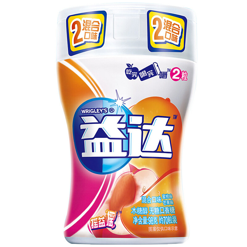 Yida Xylitol без сахара жевательная резинка (персиковый вкус + аромат манго) 70 капсулы 98 г/бутылка