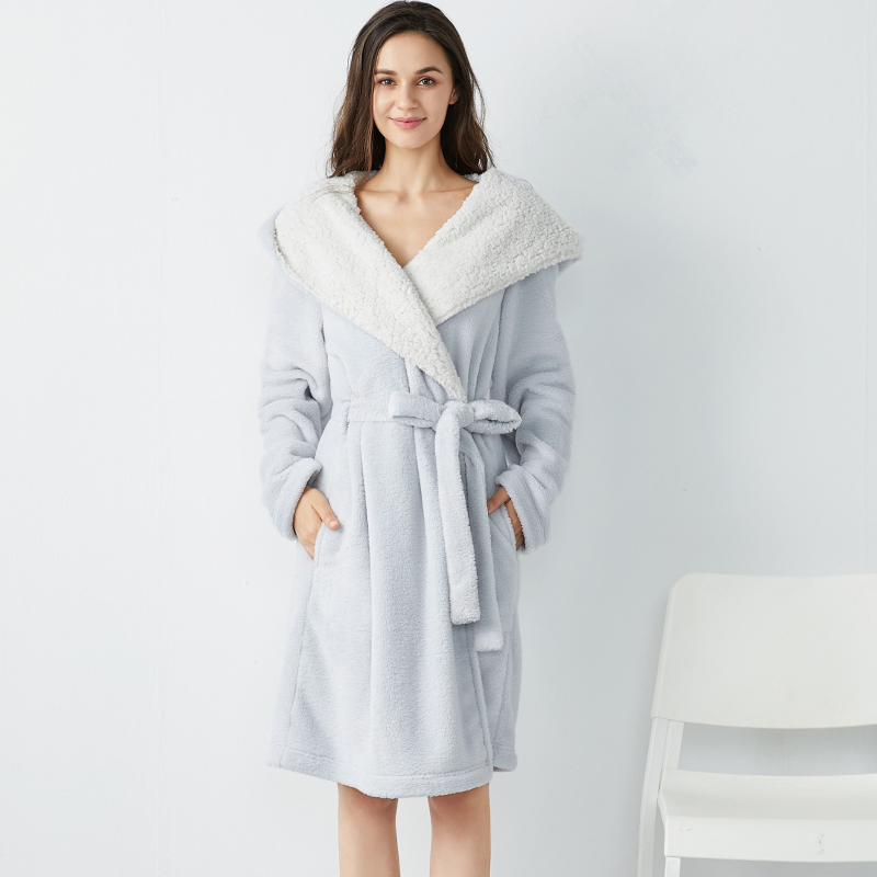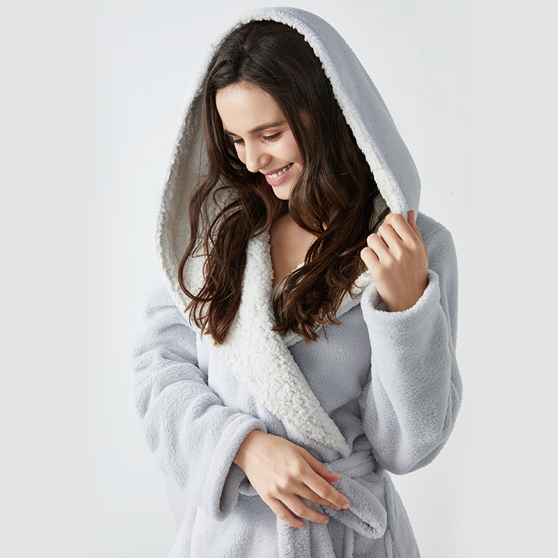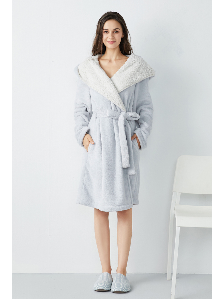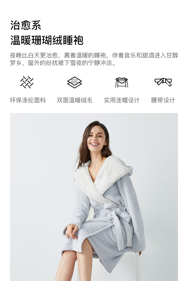 淘宝心选 Коралловый бархатный двусторонний удерживающий тепло банный халат с капюшоном