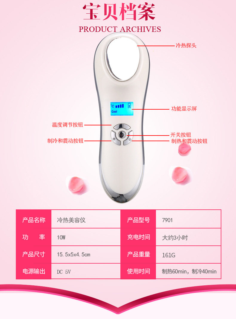 Горячий и холодный косметический массажер для лица, компресс, вибрация, очищение от шлаков и токсинов