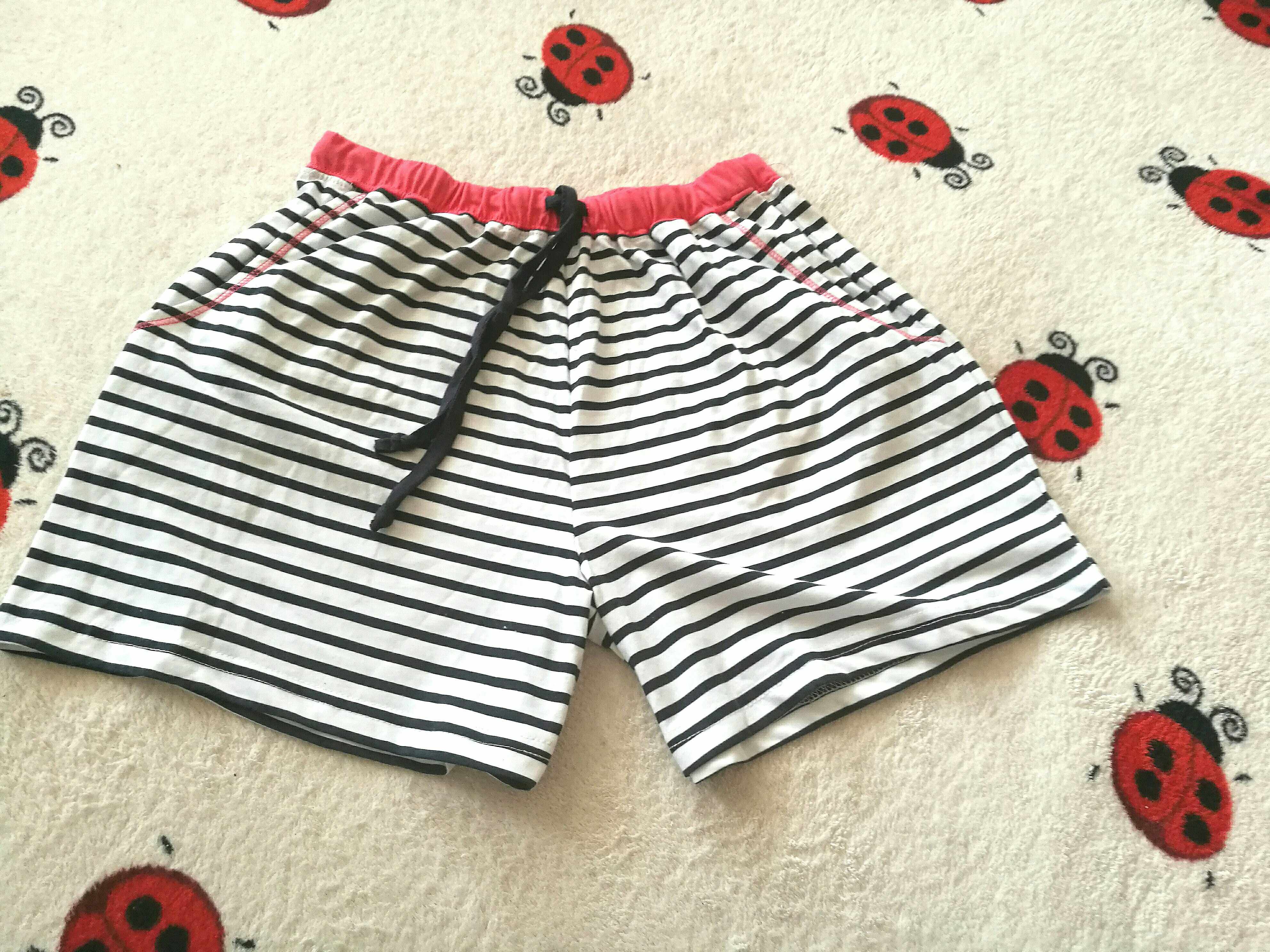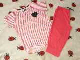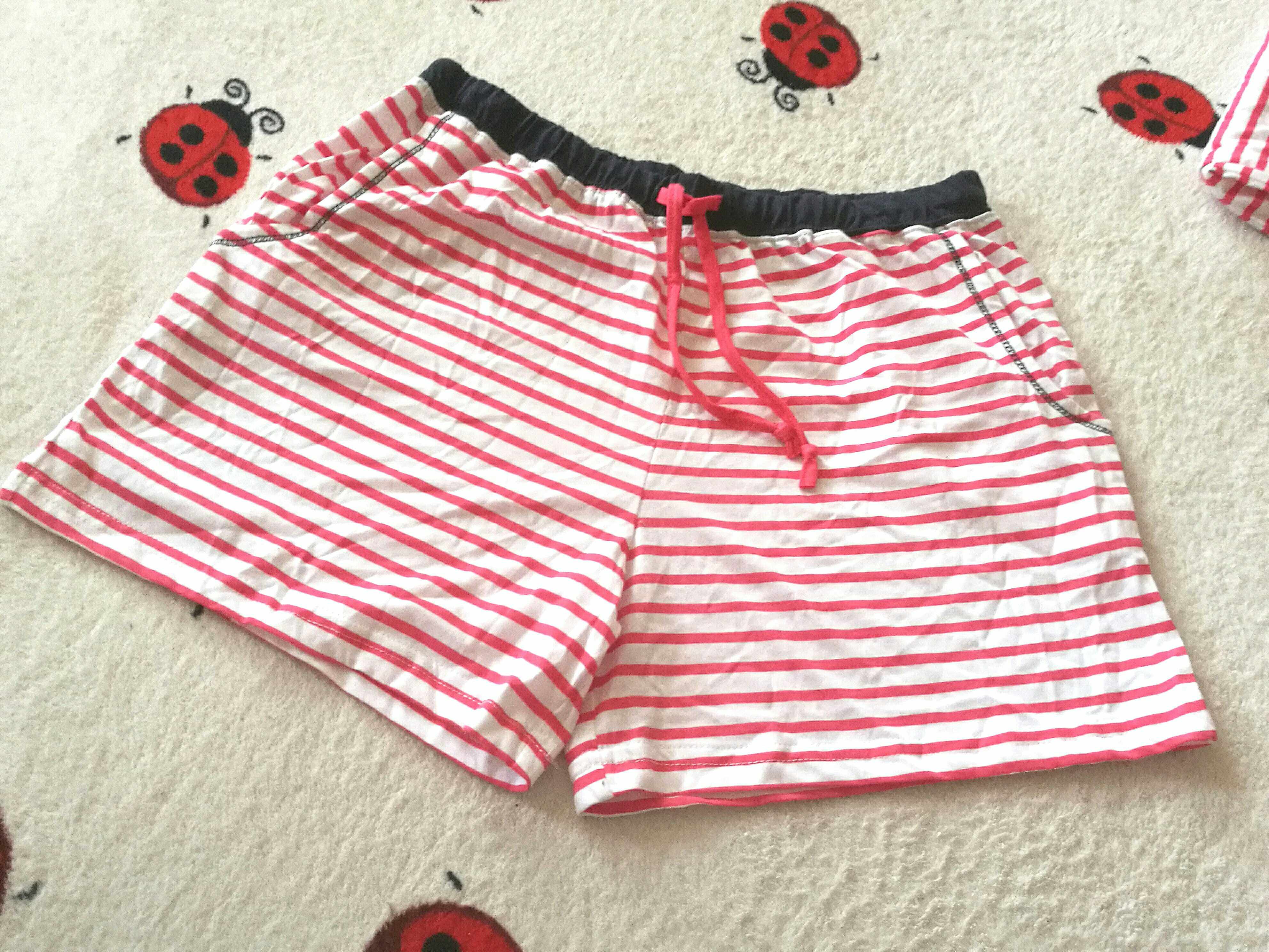 Красные штаны с полосатым коротким рукавом должны быть брюками.Это может быть выбрано в соответствии с личными предпочтениями.