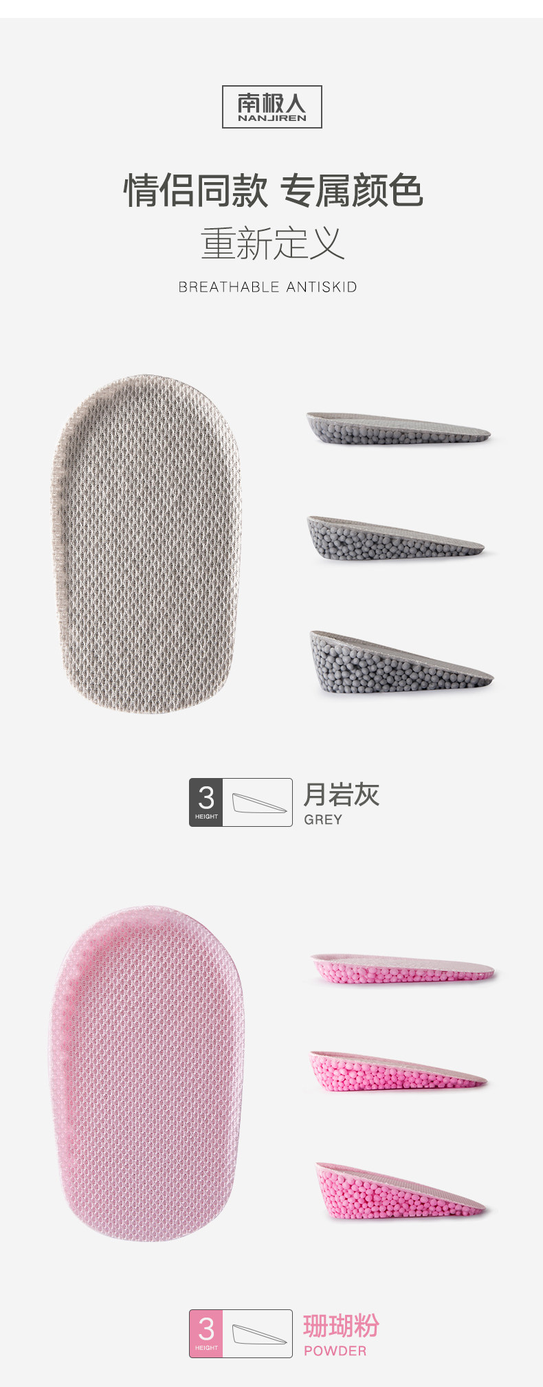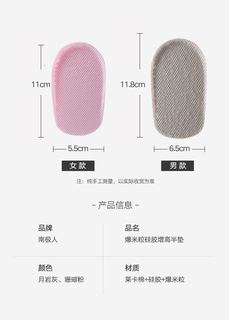 南极人 Boost, стельки для увеличения роста подходит для мужчин и женщин, невидимые летние полустельки