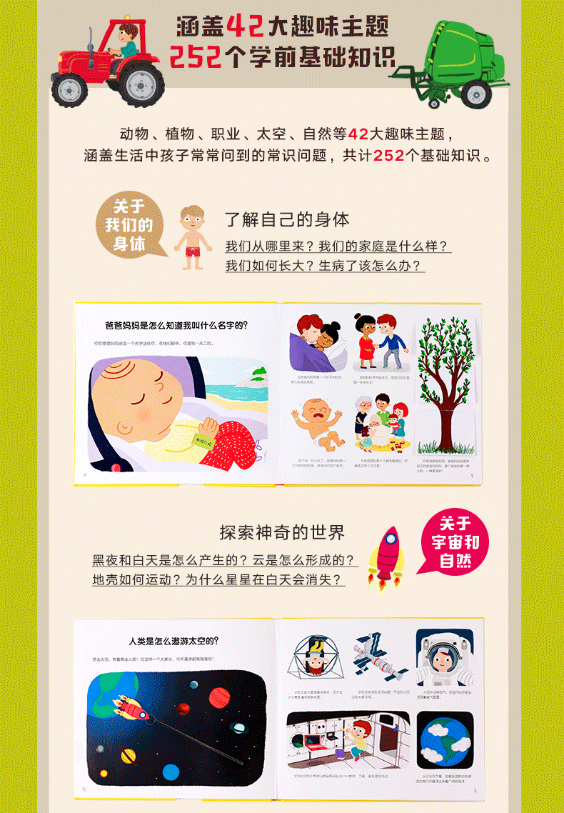 Содержание этой серии охватывает здравый смысл энциклопедии, который дети часто спрашивают в жизни. В общей сложности 252 базовых знаний о 42 забавных темах в сочетании с 23 материалами или процессами, такими как пух, вязкость, фильм и 81, такие как проигрыватель, тяга -Поллинг, переворачивание и передача интерактивных учреждений показывают сложные и изменчивые вещи новым и интуитивно понятным способом.Он не только может стимулировать, полные исследований и любопытства, помочь детям понять мир, в котором мы живем, и развивать методы мышления; они также могут проявлять мышцы рук, развивать прикосновение и обучать координацию рук.