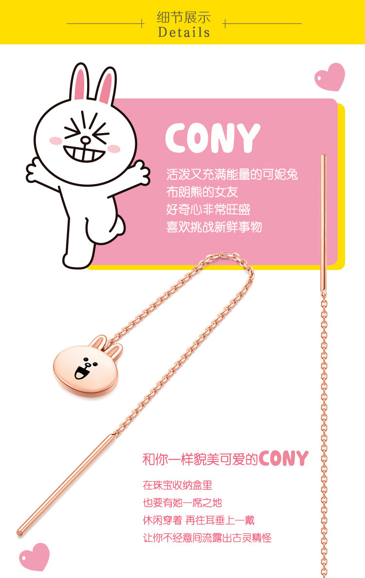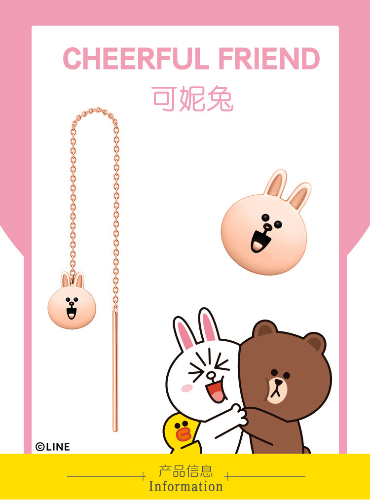 周大福 Линия друзья Кени Кролик 18K Золотые серьги ушной ушной уш