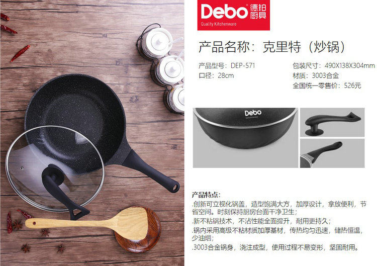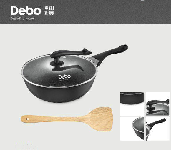 Германия Дебо де Платином Клит Линия Вок Вок 28 см. Послание деревянной лопаты