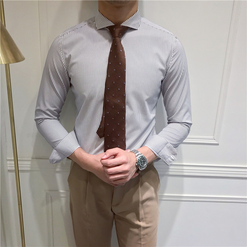 Рубашка в английском стиле, в корейском стиле, облегающий крой