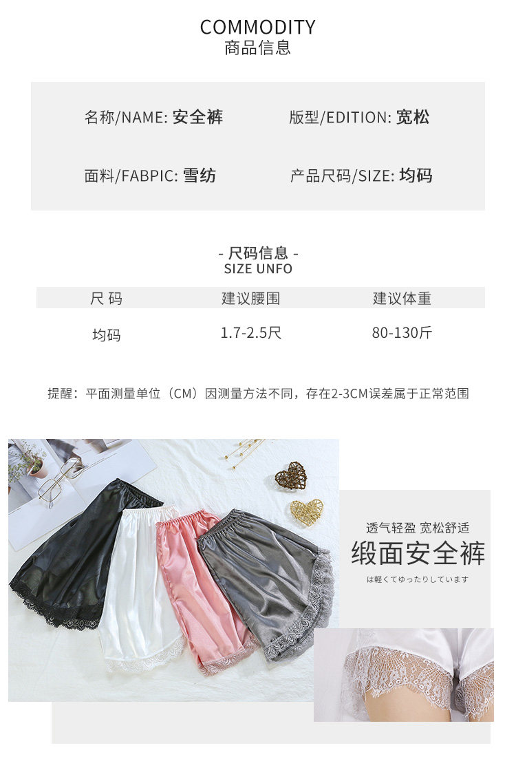 Шорты, шелковые штаны для ресниц, кружевное безопасное защитное белье, тонкие леггинсы, свободный крой