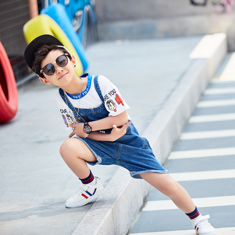 Летняя одежда для мальчиков, комплект, детский джинсовый комбинезон, штаны, 6-7-8 лет, коллекция 2023