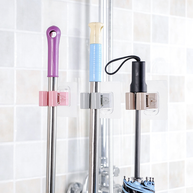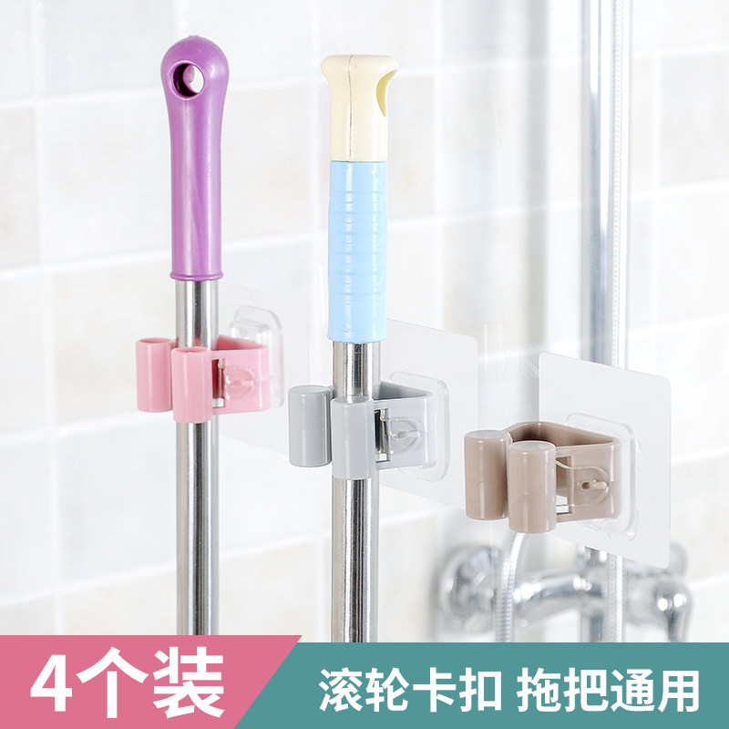Четыре установки, перфорированные держатели зажима швабры, прочный липкий крюк для ванной комнаты настенный крюк
