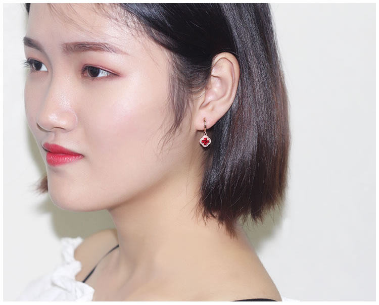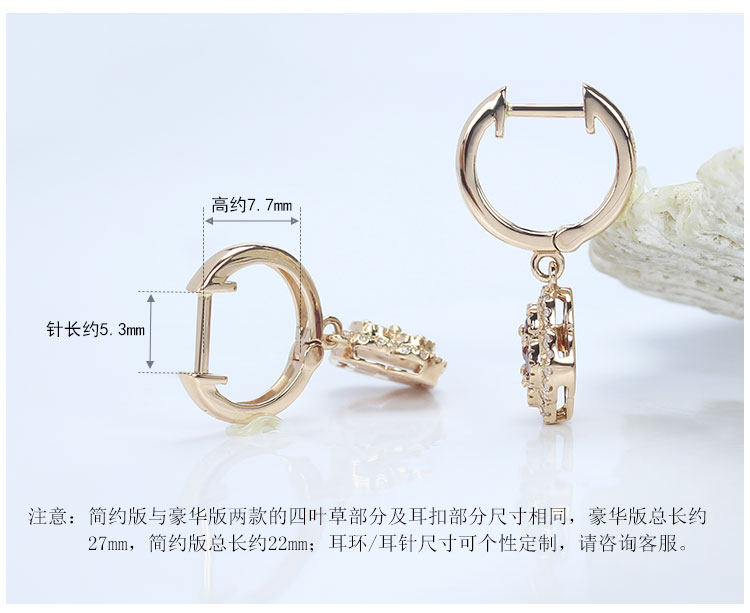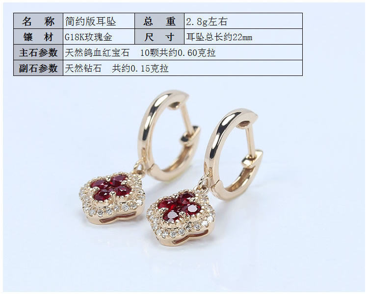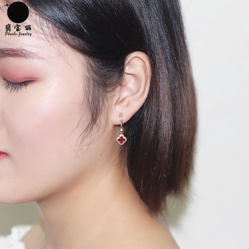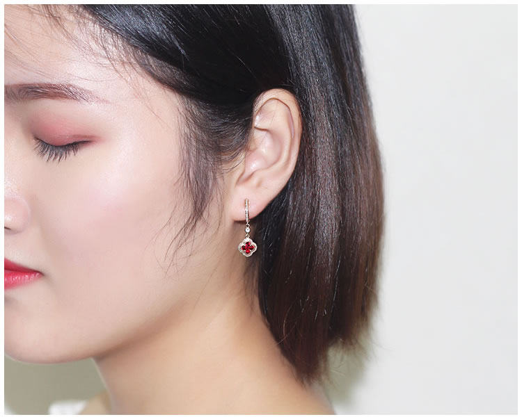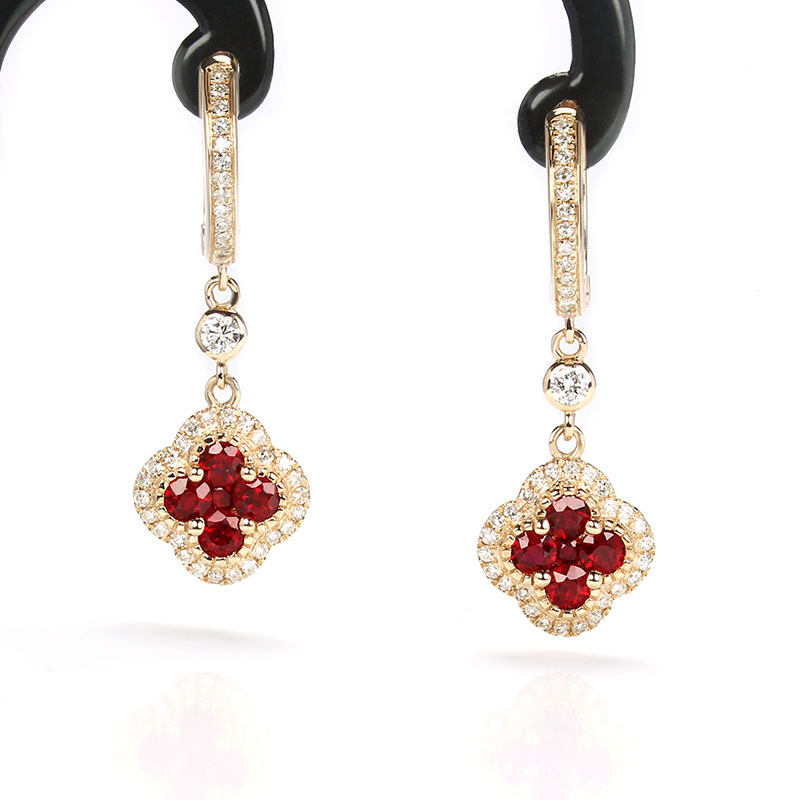 Золотой натуральный рубиновый счастливый клевер, золотые серьги, клипсы, 18 карат, розовое золото