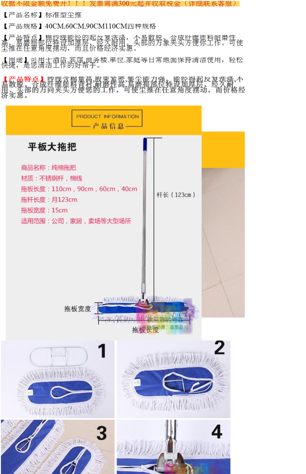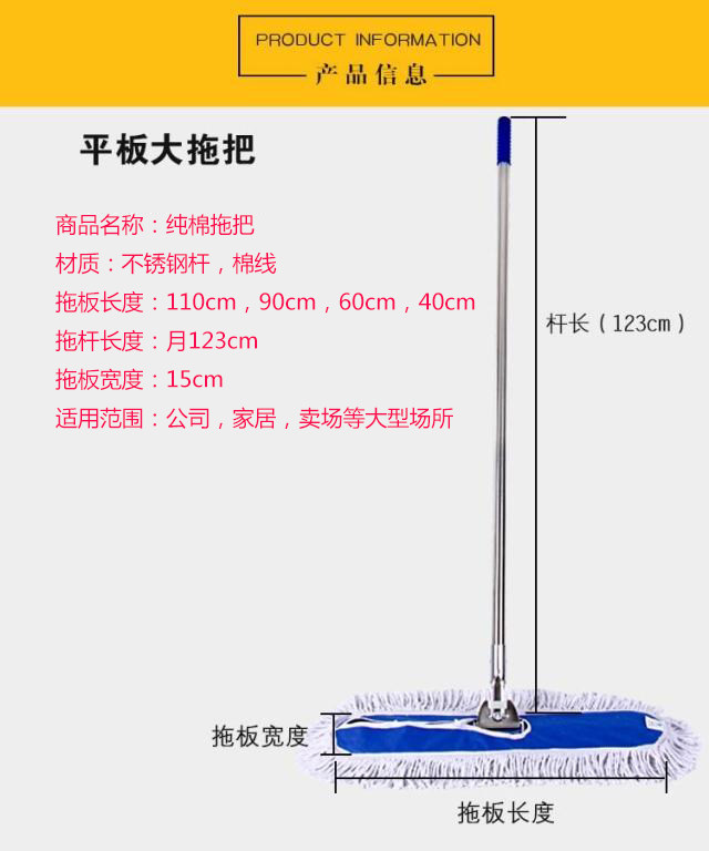 ТАБЛИЦА ПАЛЕТА МОП большой пылевой толкай прицепа Трейлер Трейлер Фабрики Отель Домохозяйство Длинное перетаскивание 40 60 110 см.