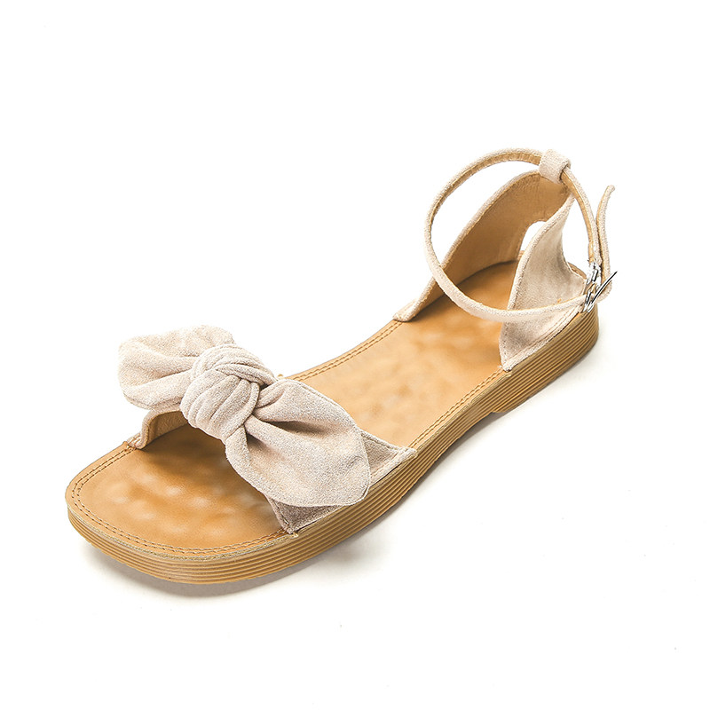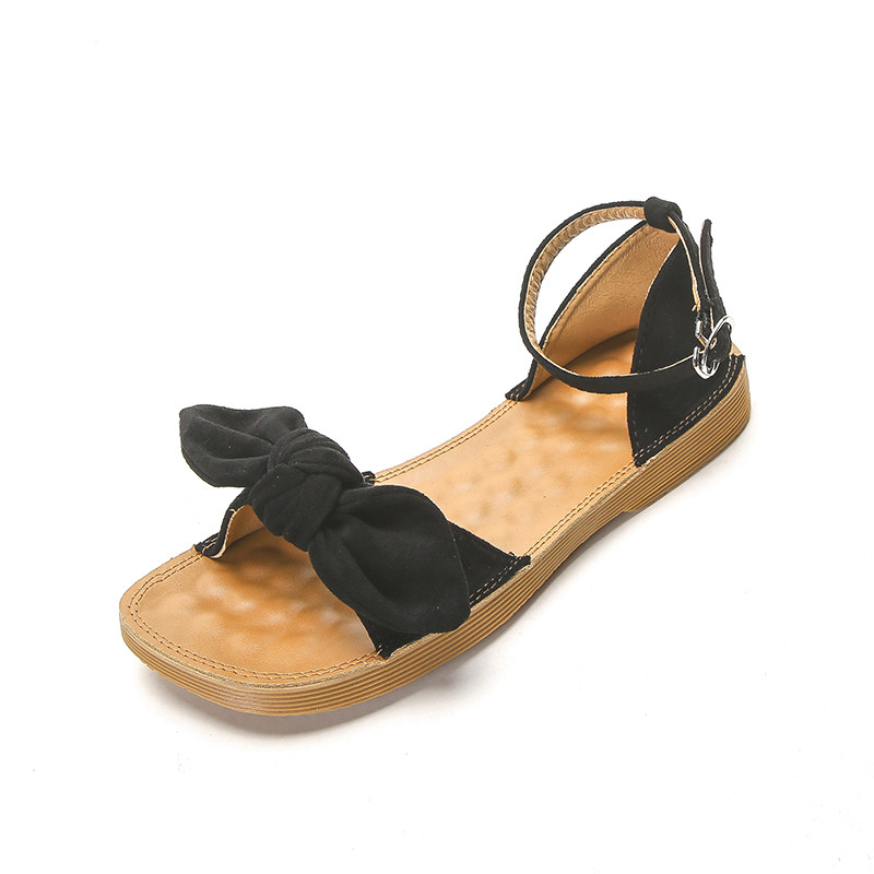 Сандалии, универсальная обувь с бантиком на плоской подошве, популярно в интернете, в корейском стиле, мягкая подошва
