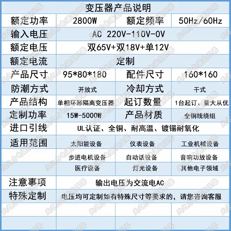 Трансформатор, 2800W, высокая мощность, 220v, 65v, 18v, 12v, делается под заказ