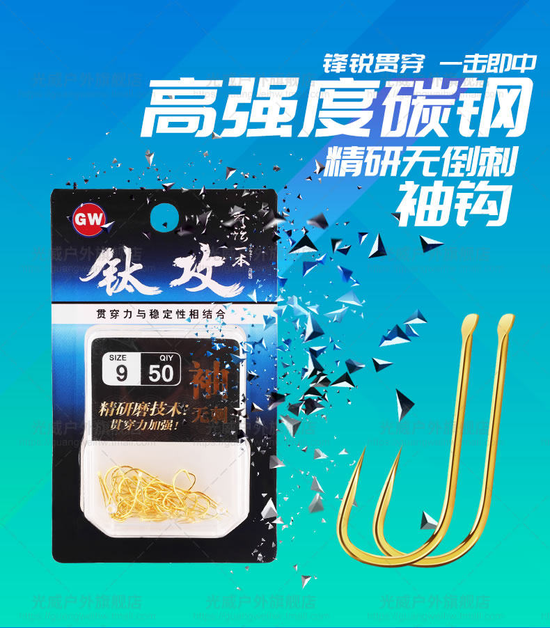 Guangwei Titanium Capital Gold крюк без заливной коробки, рыбацкий крючок с рыбацкой рыбацкой крючкой для рыбалки.