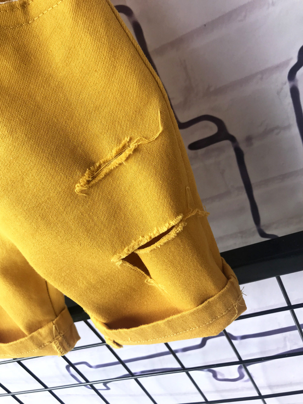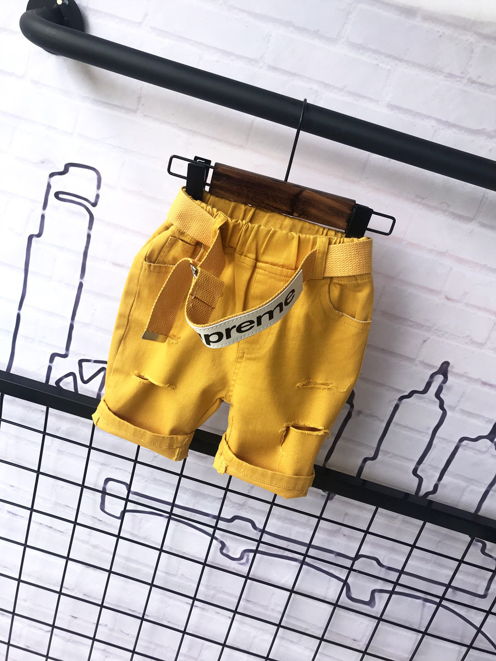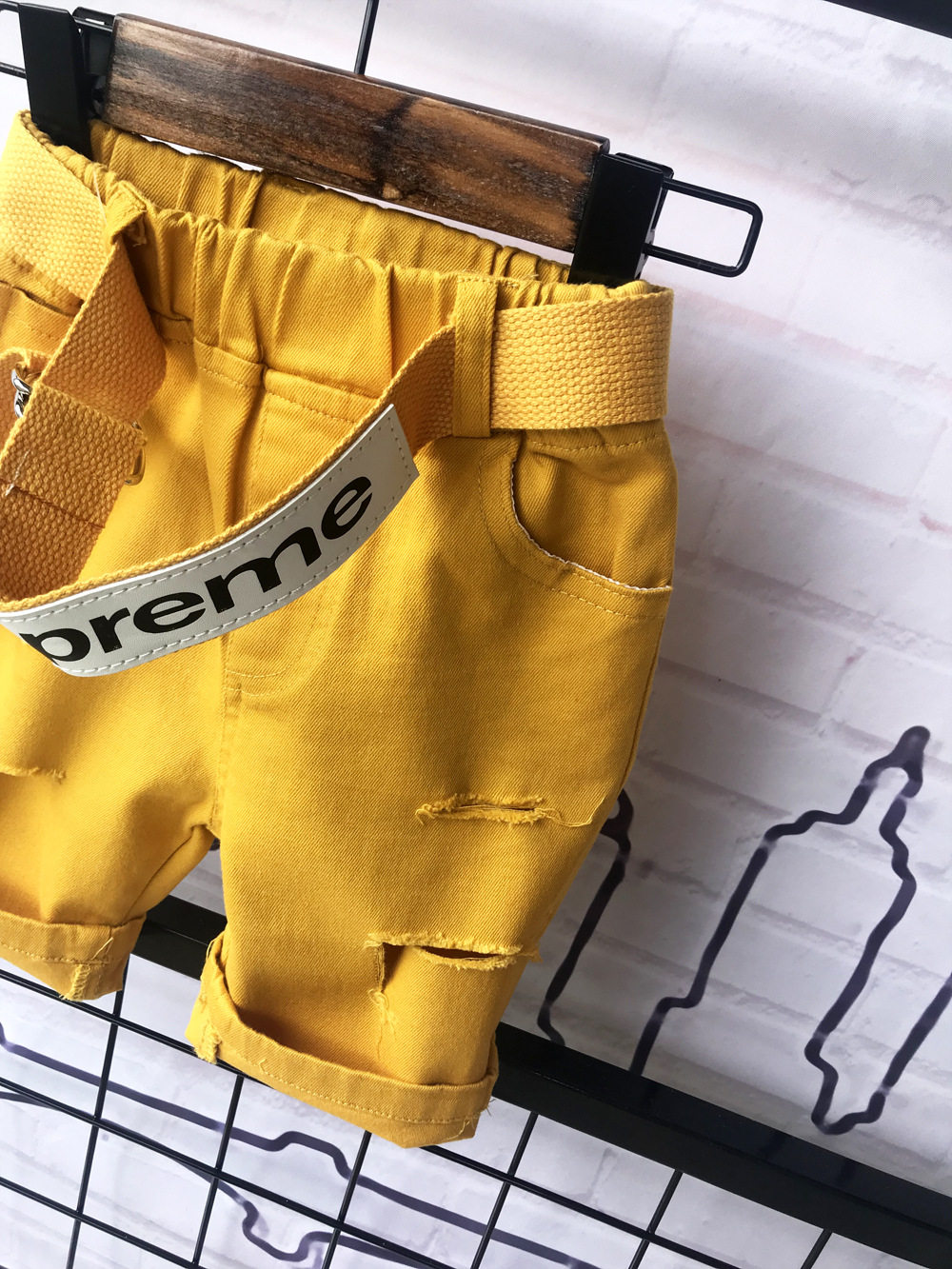 - Желтые шорты, ремень