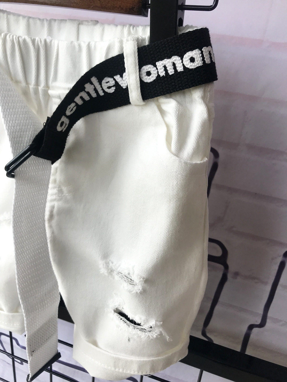 - Белые шорты, ремень