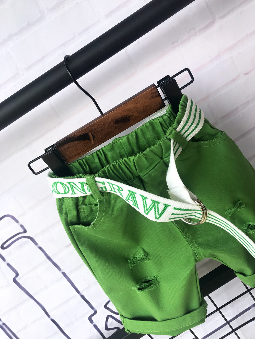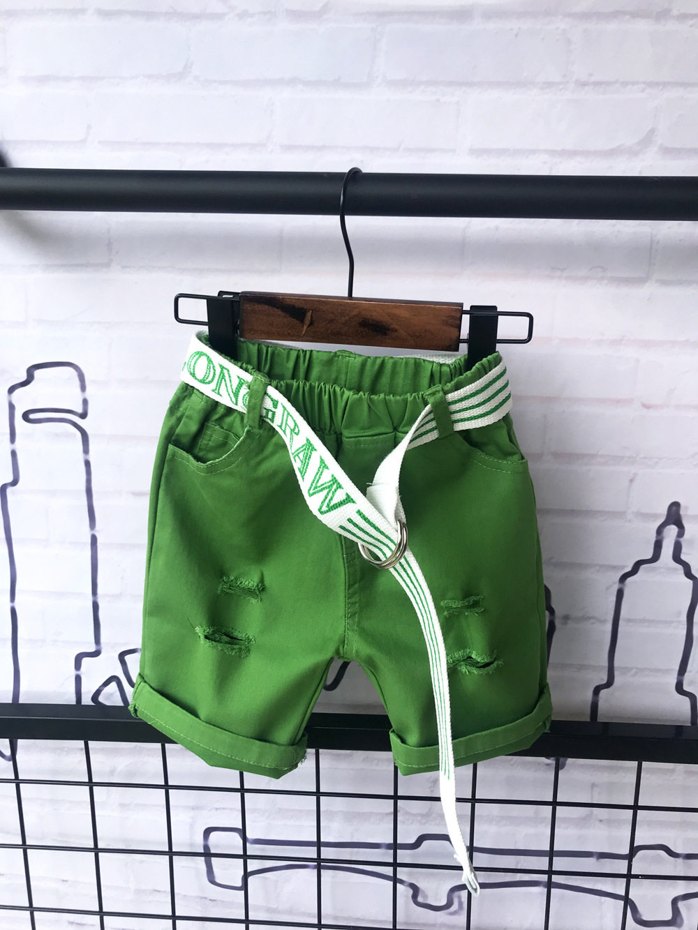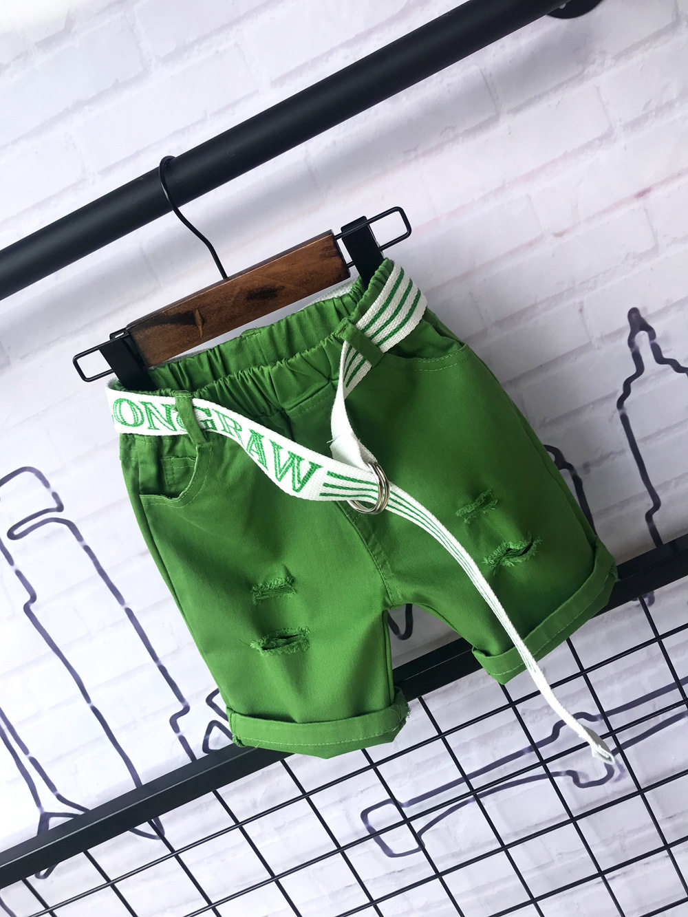 - Зеленые шорты, ремень