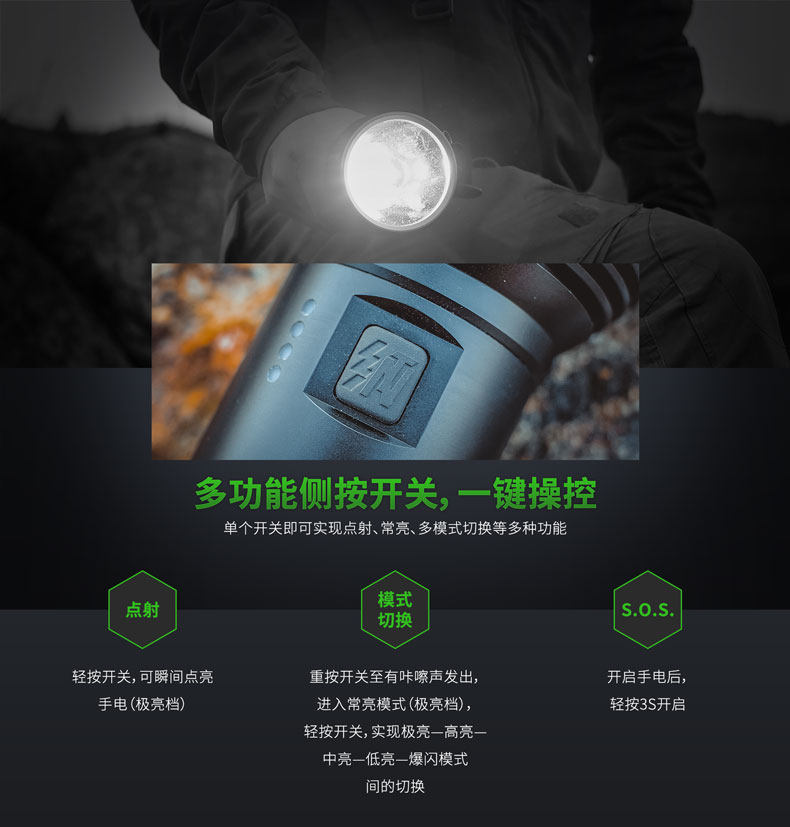 СПогон, Исправьте фонарик на талии, чтобы освободить руки.Кроме того, с красивой и практической многофункциейПортативная сумка, Легко хранится, легко носить.Надежная производительность продукта, гуманизированные детали, богатые аксессуары продукта, так что Holy Fire 11 можно широко использовать вОсмотр на открытом воздухе, поиск спасения, пещера и т. Д.Это занимает много времени, высокая яркость, длительное облучение.