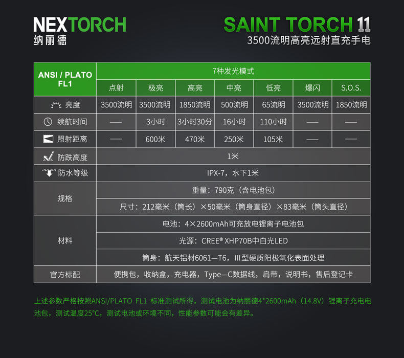 Святой огонь 11 - одинВысокий выстрелГрузов типа -типа, один кри&Reg; xhp70b белый свет светодиод3500 просветGao Liang вывод.ОптимизированныйАпельсиновая кожура Big Reflective Cup, Световые пятна однородны, можно достичь длинных снимков600 метровЭто более подходит для большого поиска длинного расстояния.4*2600 мАч может быть заряжена и выписанаАккумуляторная батареяПри обеспечении сильной мощности и длительного срока службы батареи для Святого Огона 11, его также можно использовать в качестве водонепроницаемой большой капотымобильная энергия, Зарядка электронных устройств, таких как мобильные телефоны, планшеты.Новый USBТИП-C FAST ЗарядкаИнтерфейс с официальным стандартным зарядным устройством может быть полностью заряжен всего за 3 часа.4 светодиодаИндикатор мощностиСколько стоит сила с первого взгляда.