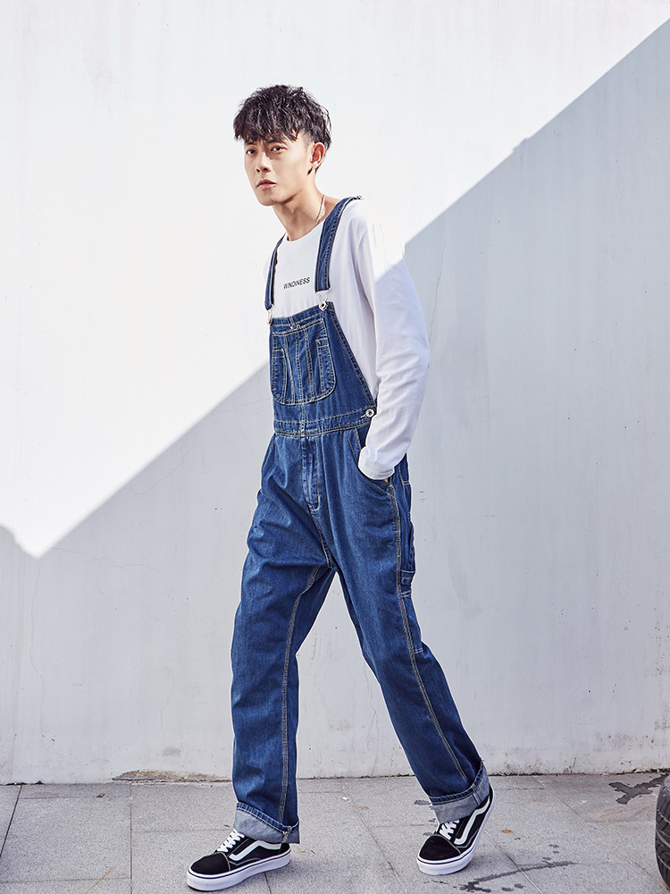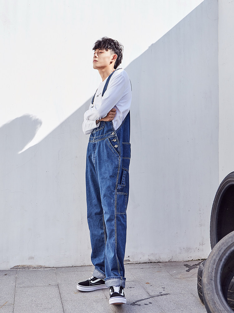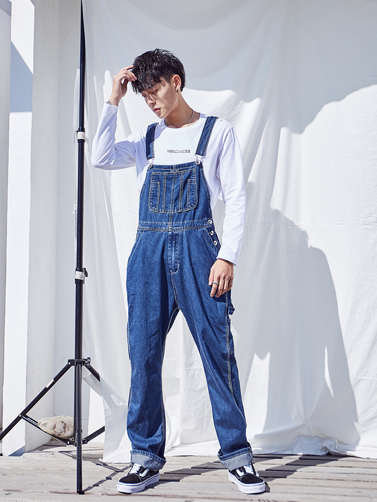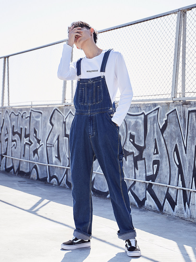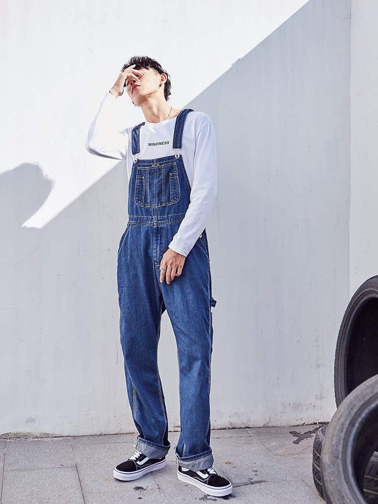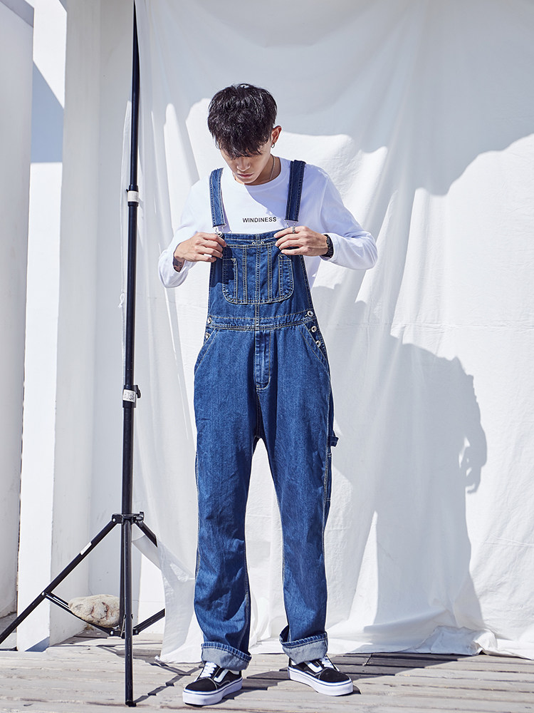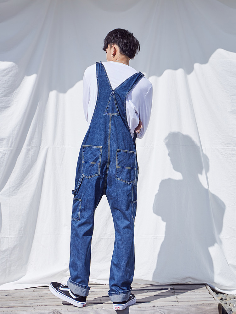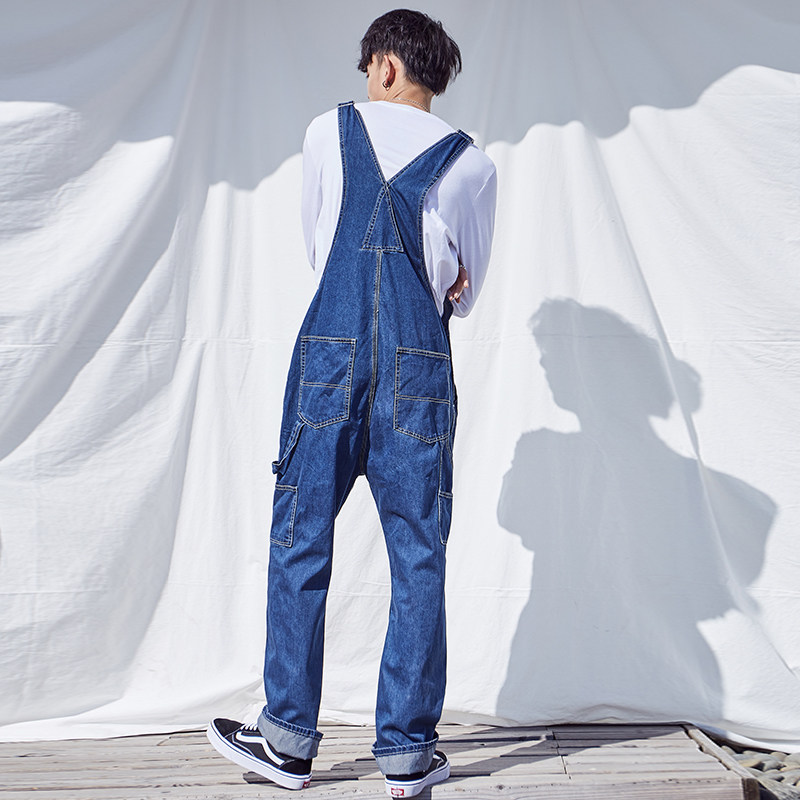Оригинальный японский джинсовый комбинезон в стиле хип-хоп, большой размер, оверсайз, для влюбленных, свободный прямой крой