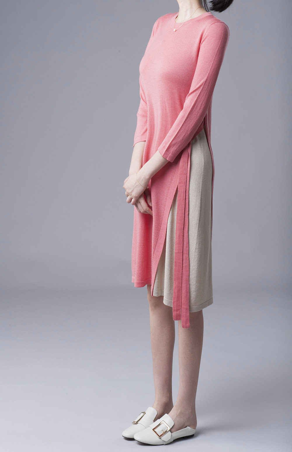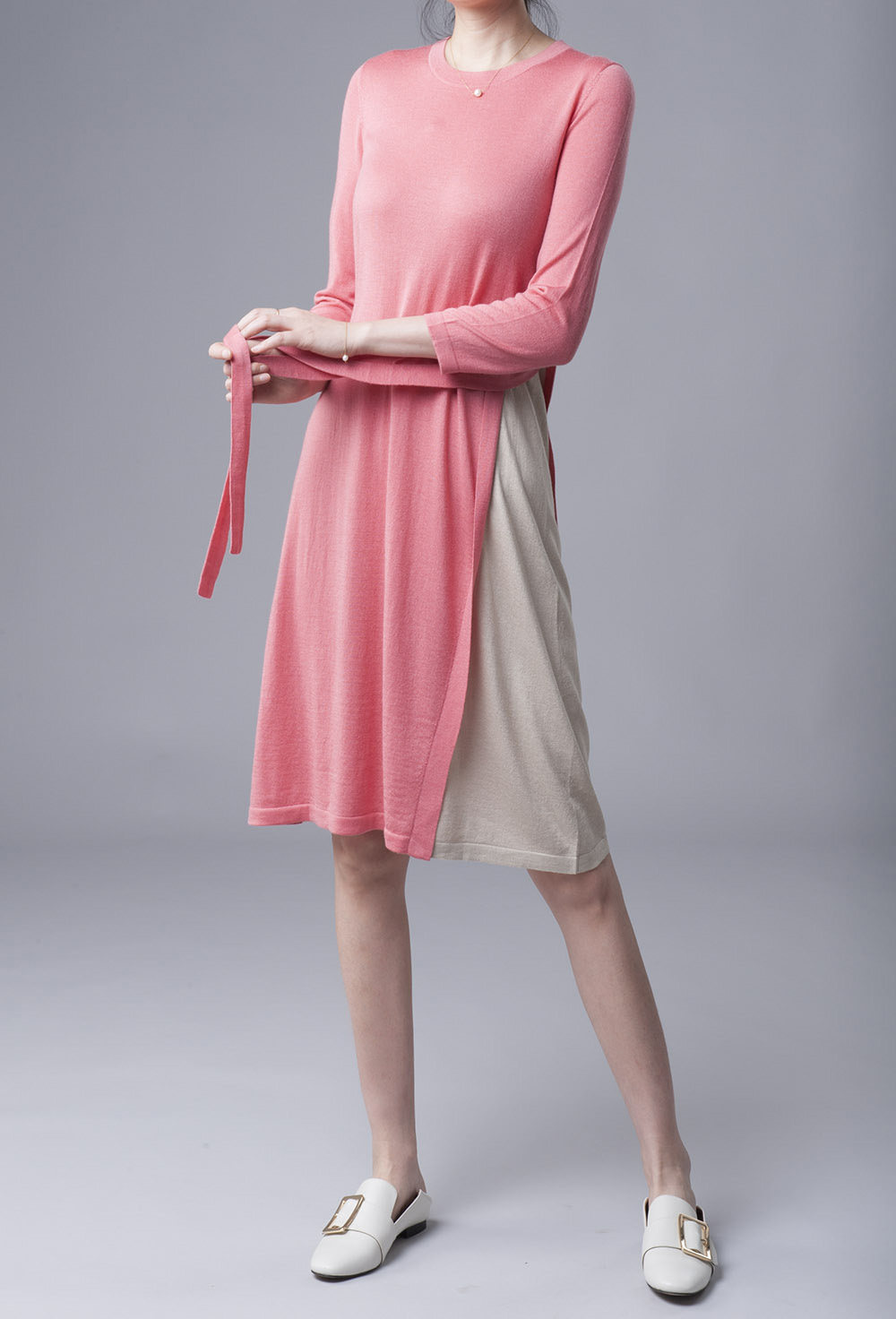 Но хочу сказать, что примерив его, розовый цвет мне показался неожиданно красивым. Это редкий персиково-розовый оттенок, мягкий, но не детский.