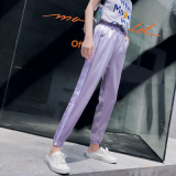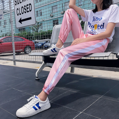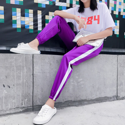 Спортивные летние сиреневые шелковистые штаны для школьников, коллекция 2021, в корейском стиле, оверсайз