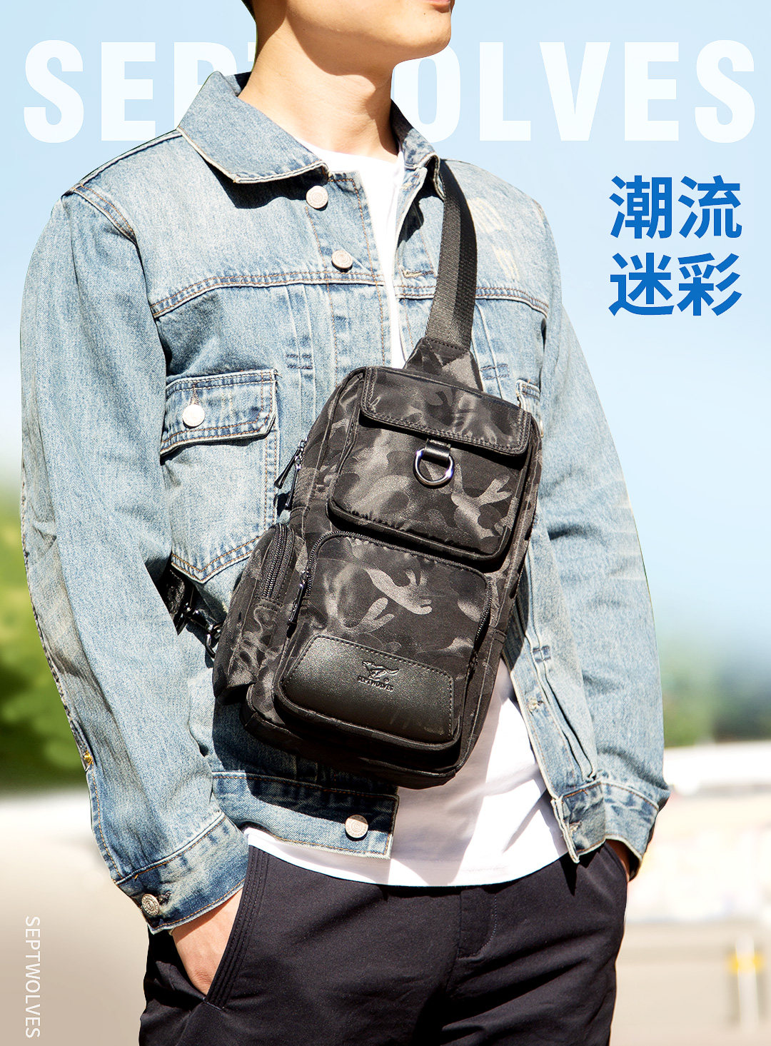 Septwolves, нагрудная сумка, сумка на одно плечо, шоппер для отдыха, рюкзак, ткань оксфорд, в корейском стиле