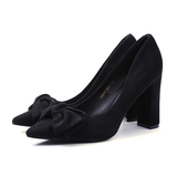 Матовые замшевые универсальные туфли на высоком каблуке с бантиком, 2018