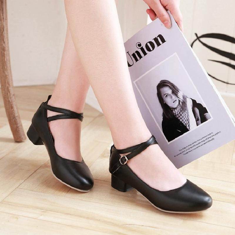 Одиночная обувь женская низкая каблука черная белая кожа