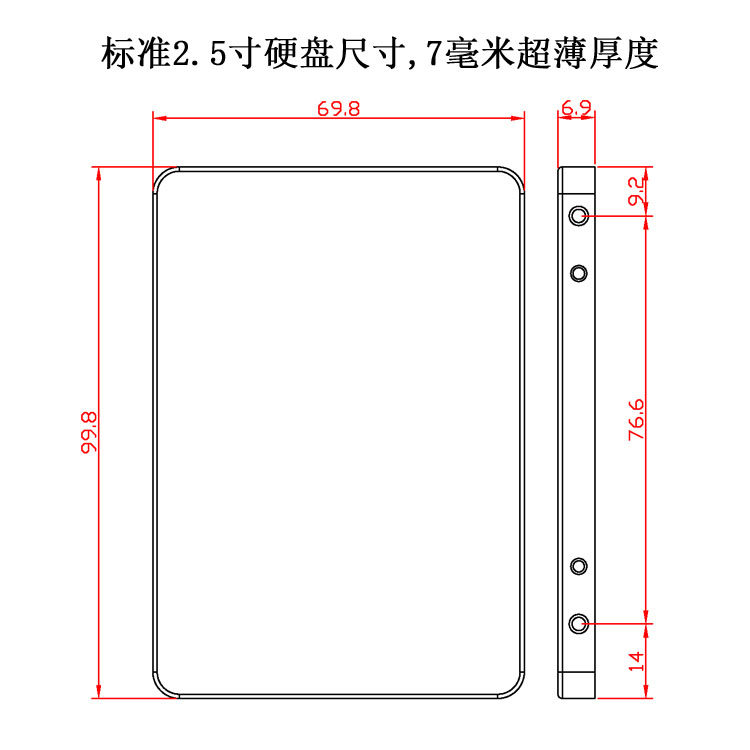 2.5 -INCH SSD с твердым твердым диском оболочкой Ультра -ТИН 7 -мм ноутбука с твердым диском оболочкой все алюминиевые сплавы охлаждение