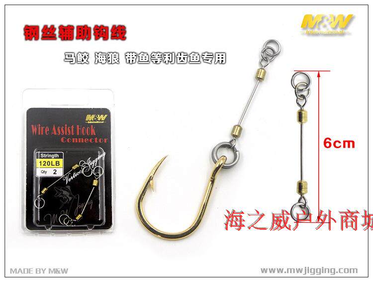 MW Стальная проволочная вспомогательная крючковая проволочная головастика, морская волчья группа, рыба, рыба, рыбацкая рыбалка 120 фунтов 2 вход