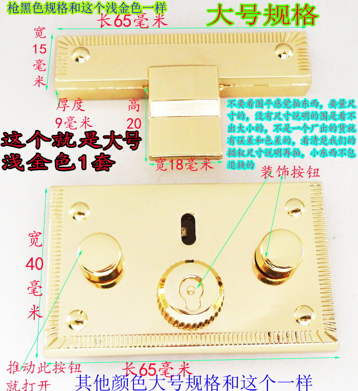 Бесплатная доставка, аксессуары для сумок, аппаратный замок, большой квадратный замок, брендовая сумка, пистолет, черная кнопка, кнопка блокировки, золотая кнопка