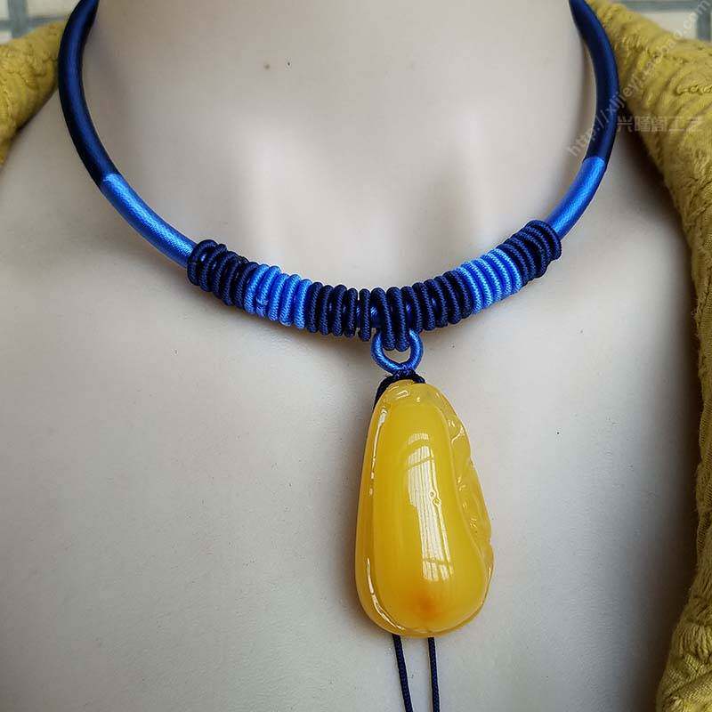 Оригинальное ожерелье из шнура, чокер ручной работы, подвеска, ремешок из воскового агата, цепочка до ключиц подходит для мужчин и женщин