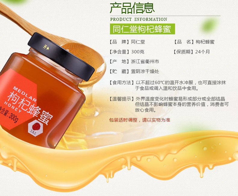 Пекин Тонгрентанг Флагманский магазин Официальный сайт Wolfberry Honey 300G Tongrentang Wolfberry Hone