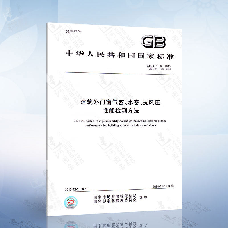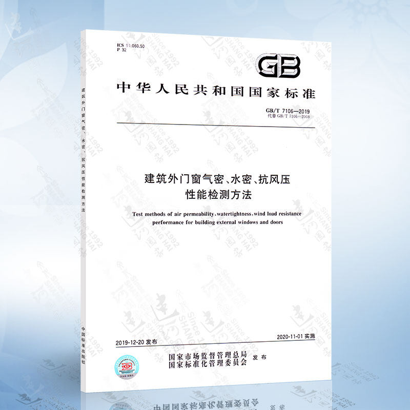 GB/T 7106-2019 Метод классификации и обнаружения для воздухонепроницаемого сопротивления давлению с водонепроницаемым ветром в здании наружных дверях и Windows 2020-11-01 Реализация Заменить GB/T 7106-2008 Китай Стандартный издательский дом 2020-11-01 Замените GB/T 7106-2008