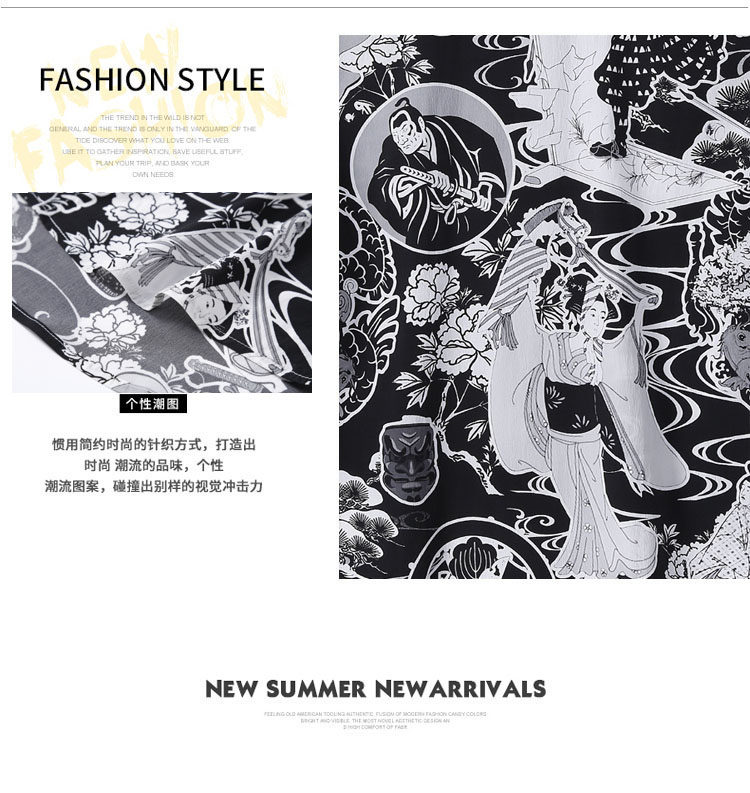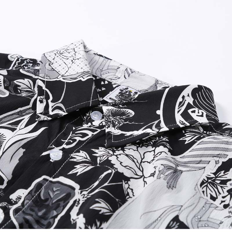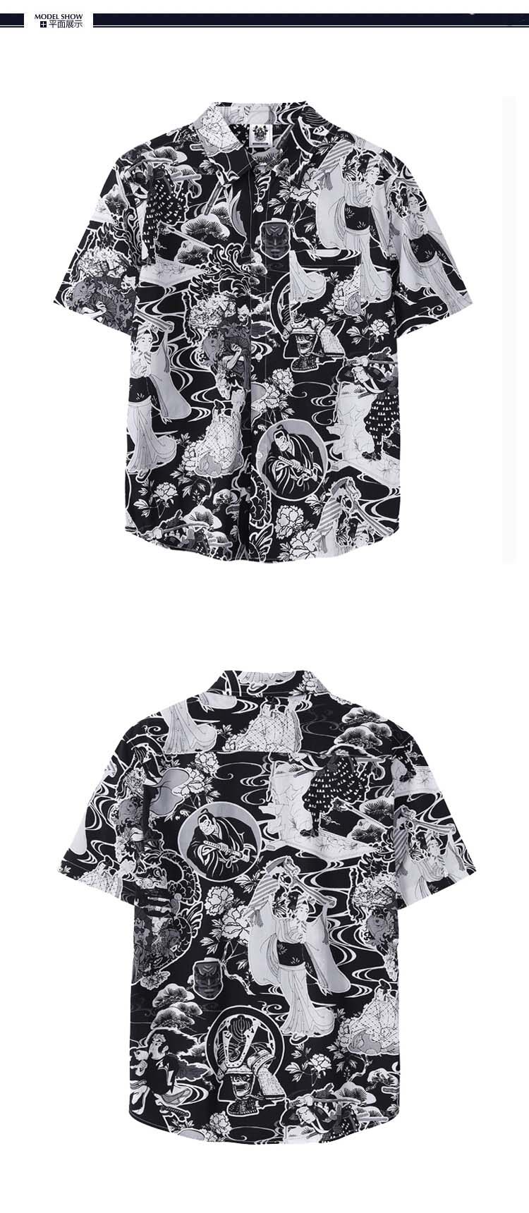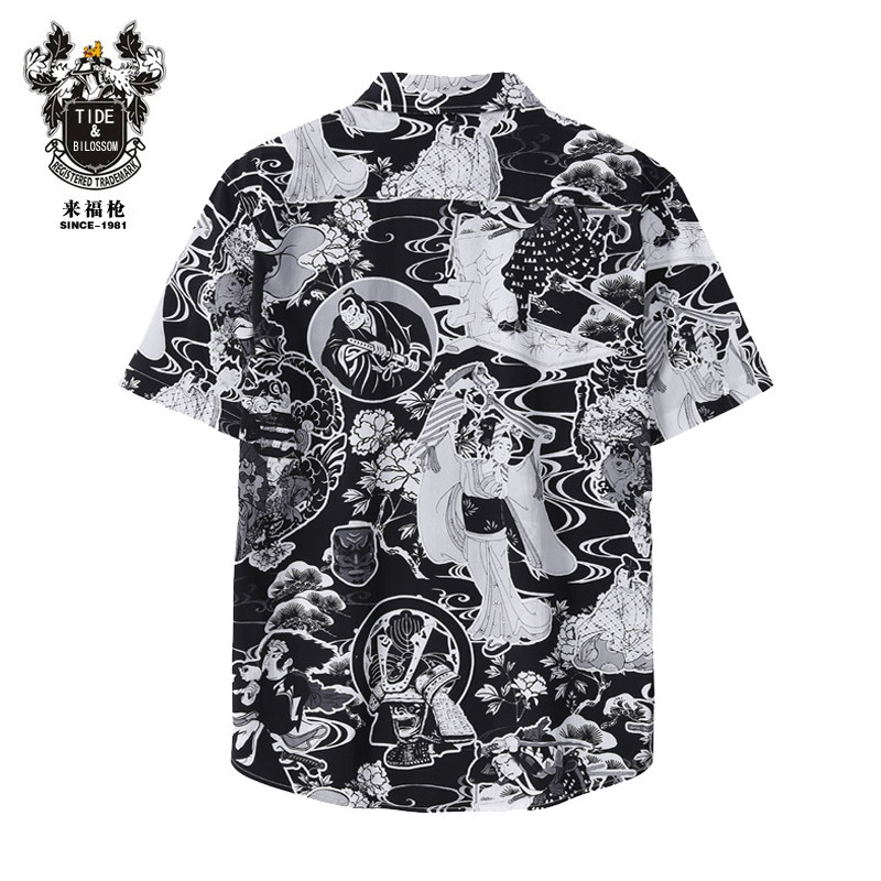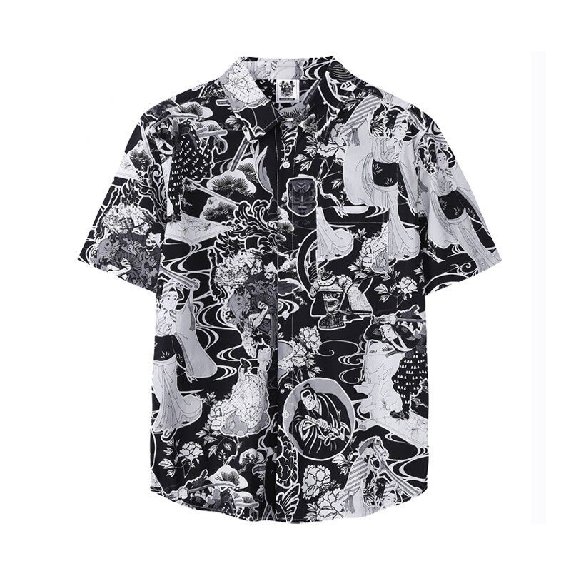Японская рубашка, приятная телу татуировка, короткий рукав, свободный крой