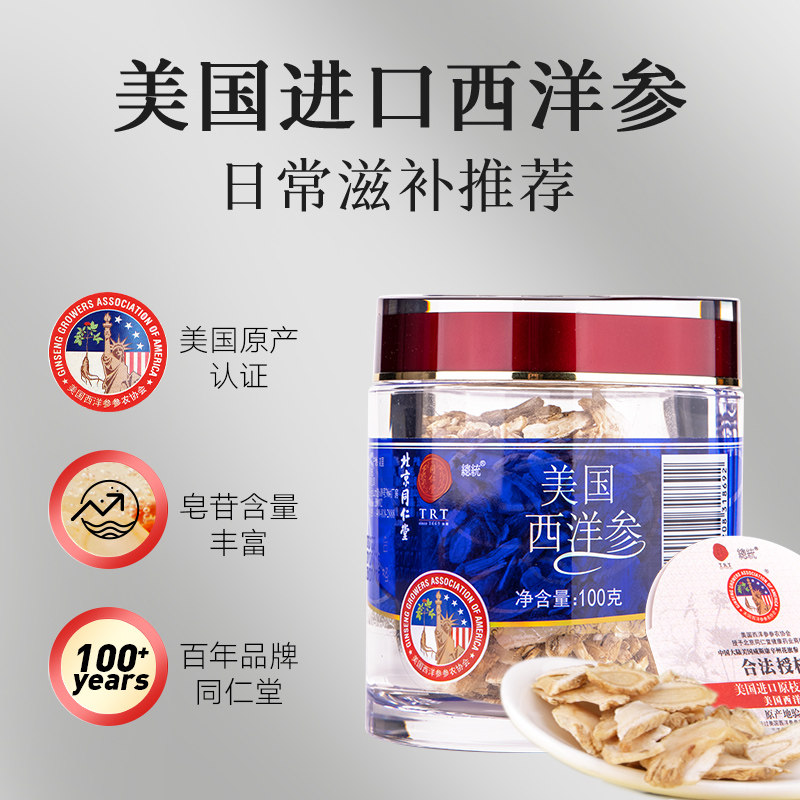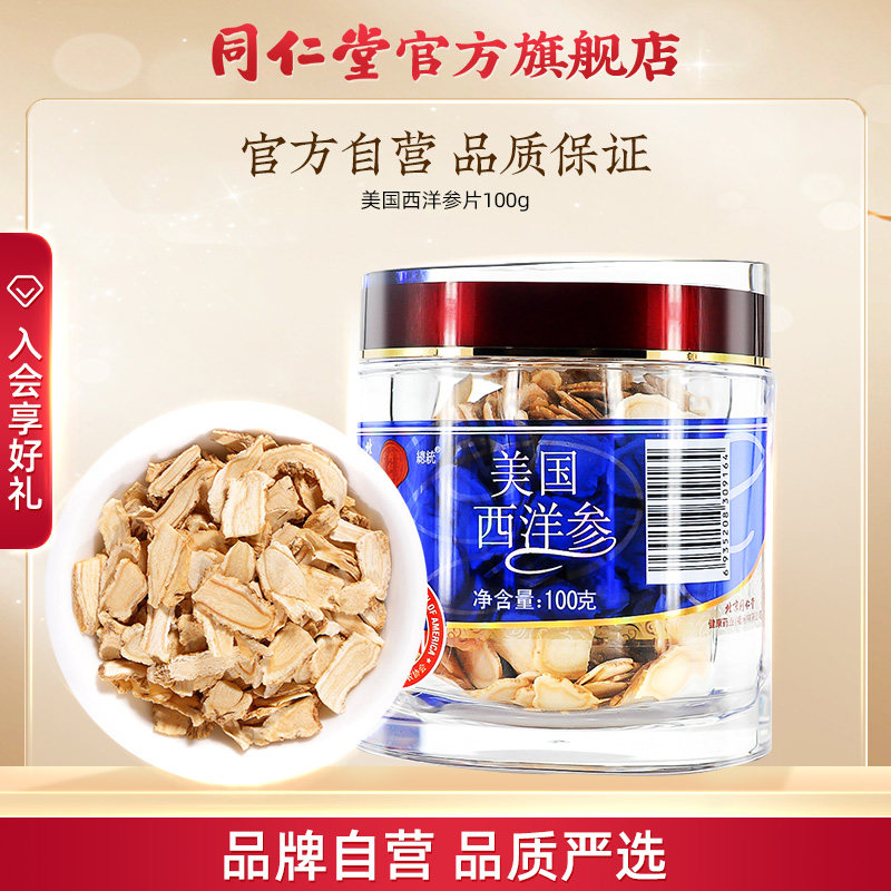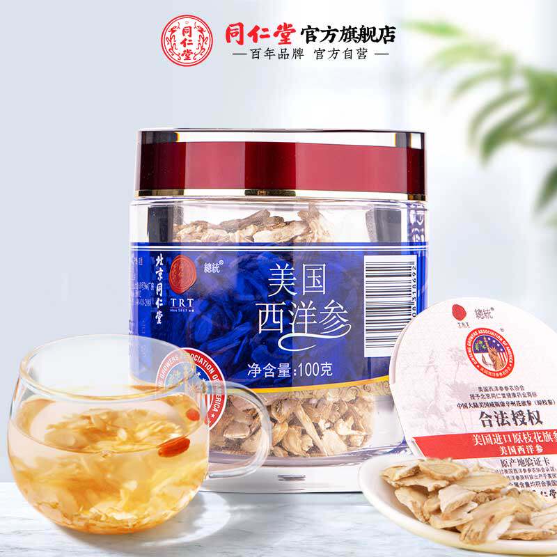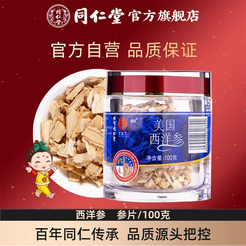 Пекинг Тонгрентанг Флагманский магазин Официальный веб -сайт Western Ginseng Film 100g Американский американский женьшень с подлинным