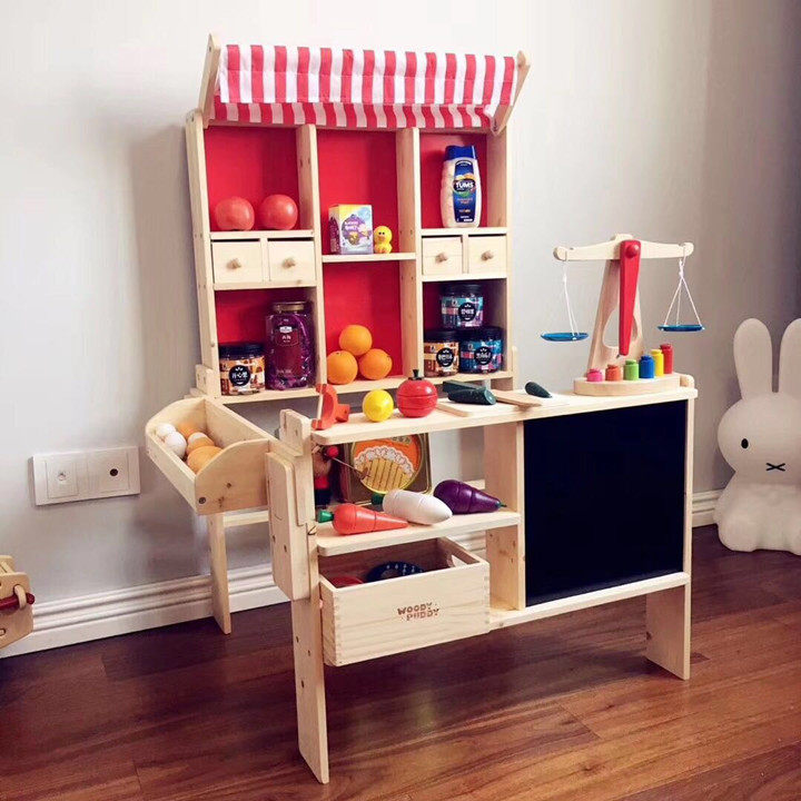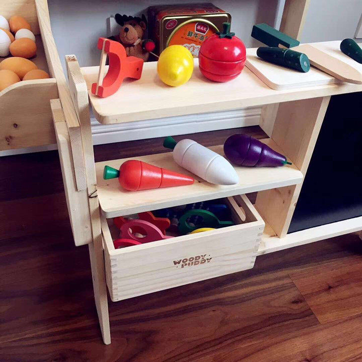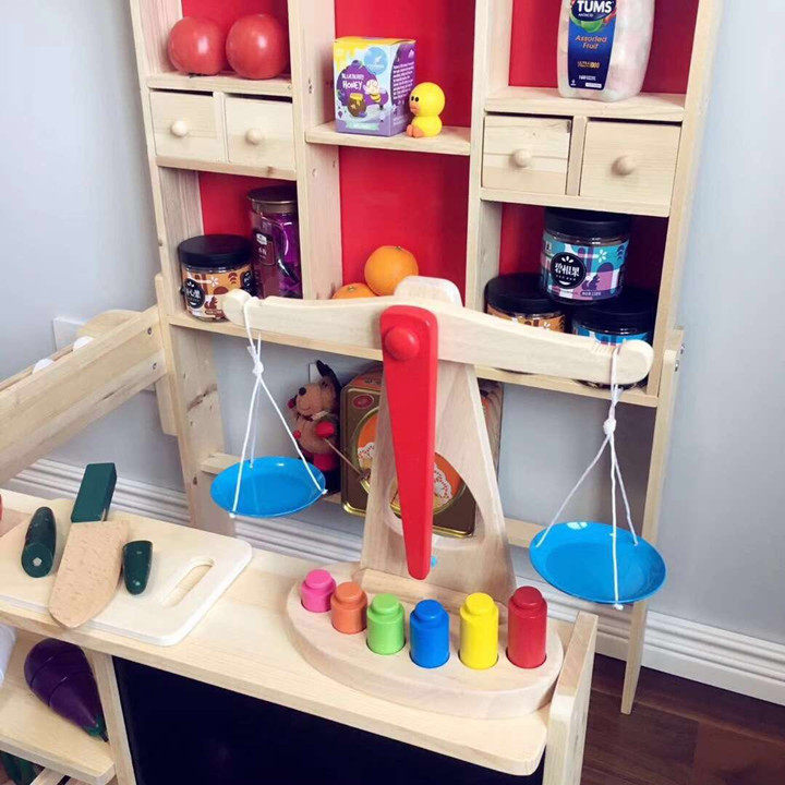 Деревянный детский кассовый аппарат, касса, игрушка, семейный реалистичный комплект, корзина для покупок, круглосуточный магазин