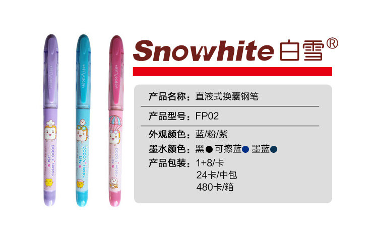 Студенческая ручка Baixue можно заменить на прямую жидкую ручку с 8 чернильными студентами Cartoon Pen Fp02