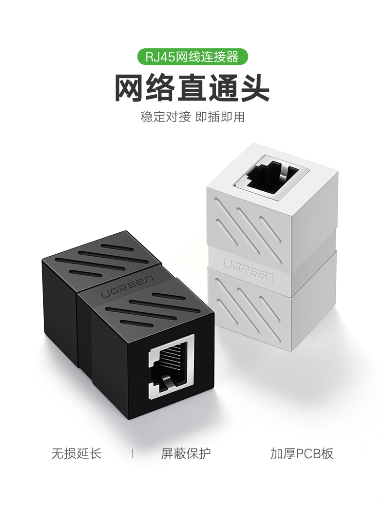Ugreen Green Union 20390 RJ45 Сеть кабельная сеть двойная головка модуля прямой головки Black 20311 20311