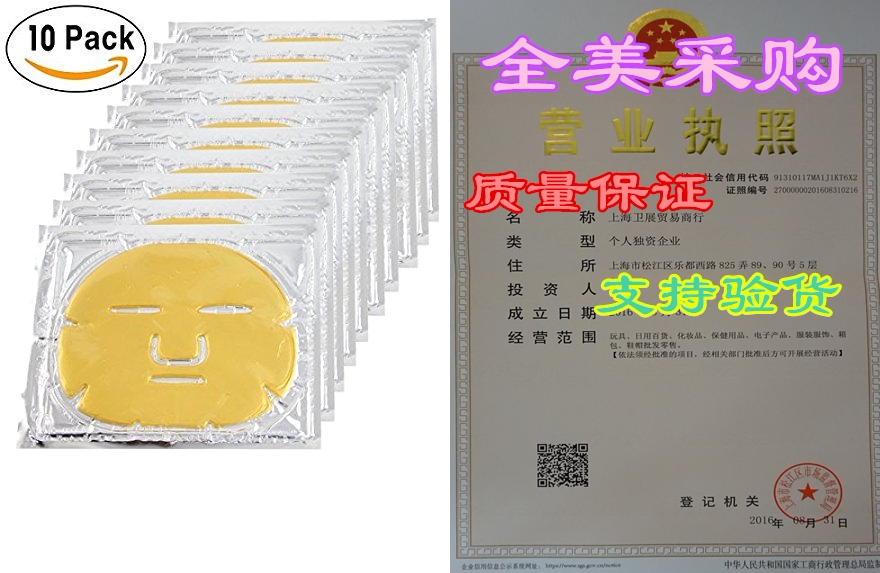 EZGO 10 штук 24K Gold Bio-Collagen обновляемая маска для лица, c