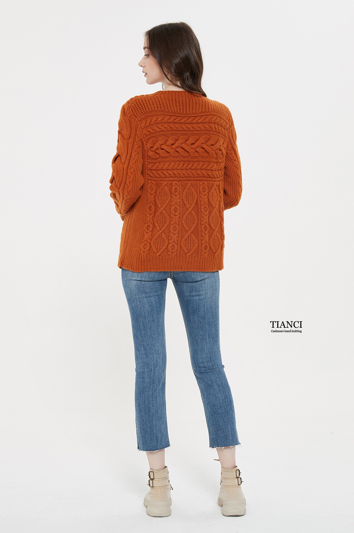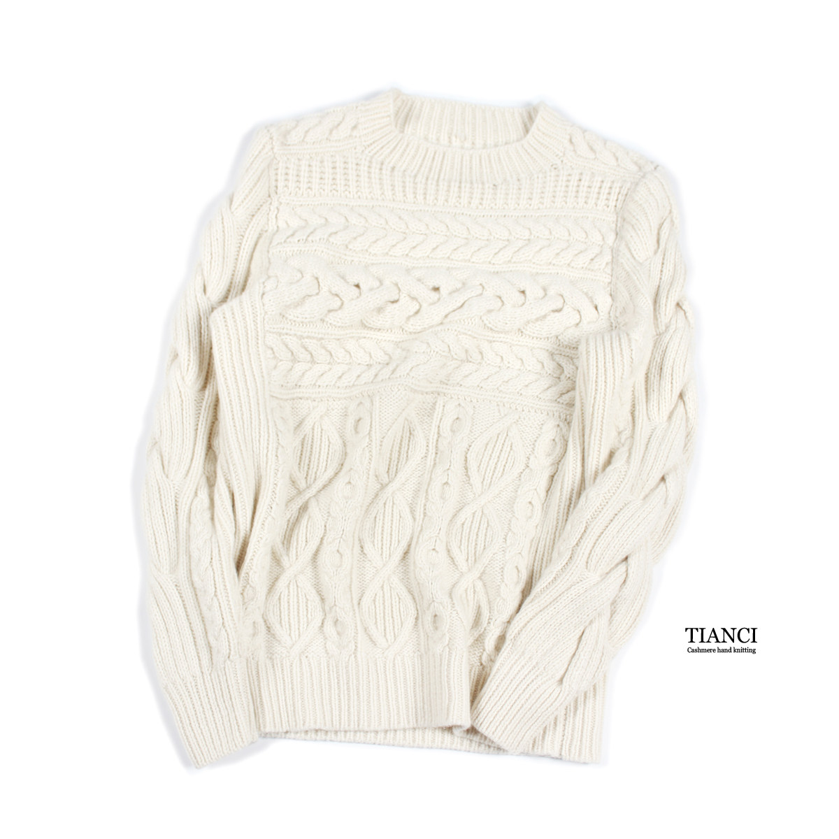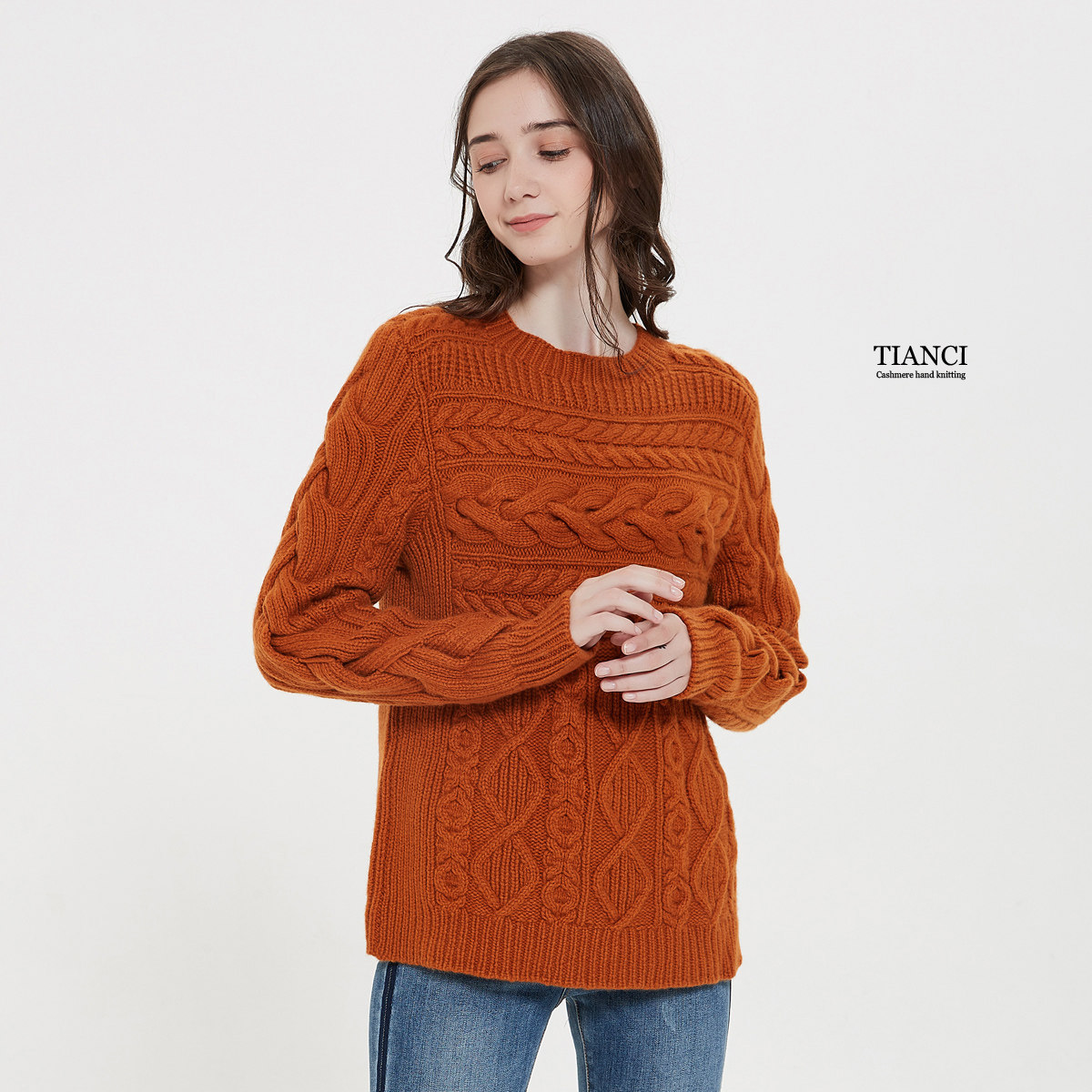 Кашемировый плетеный свитер для отдыха с круглым воротником
