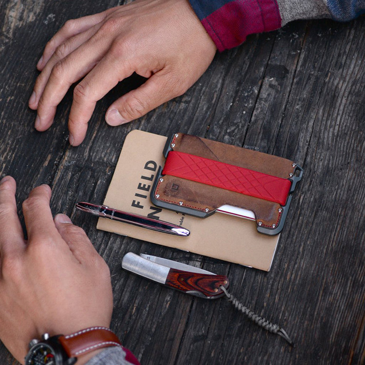 Карта хранится между металлическими ломтиками или кожаным карманом, расположенным на ней или может быть прочной на сумке для карты с наличными через силиконовое кольцо.