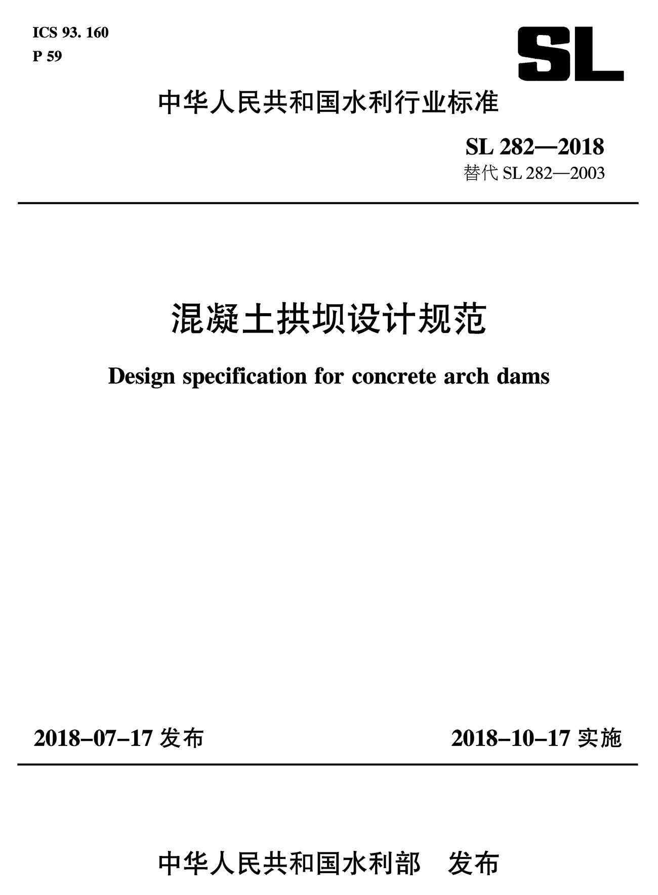 SL282-2018 Технические характеристики проектирования бетонной арки (замените SL282-2003)